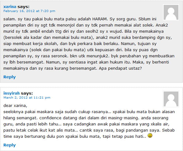 Sebagai peringatan, gunakanlah maskara yang tidak menonjol ketebalan bulu mata tersebut sehingga menarik perhatian kaum lelaki. Sesungguhnya tabarruj atau pemakai perhiasan yang berlebihan itu adalah amalan zaman jahiliyyah.